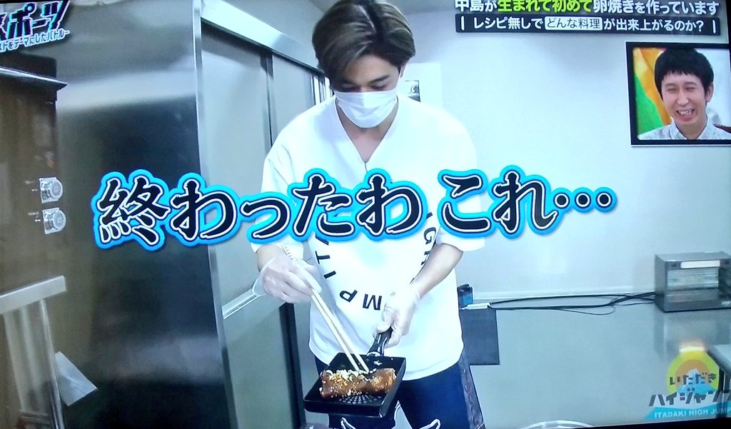 まずは中島が卵を片手で割ると、高木が「うわ! “カッコつけマン”が出た!」と大喜び。その後、「料理しないから、本当にわかんないやー」と言いながら、中島は卵の中に醤油や砂糖を多めに入れて、フライパンに油を引いたところで「どうやって作るんだろう……」とボソリ。その様子を見た山田涼介は「裕翔のこういう姿なかなか見れないから……」と、何事もそつなくこなす中島の意外な一面に驚いていたが、出来上がった卵焼きは“丸焦げ”の状態。中島は「終わったわ、これ」とつぶやいていた。